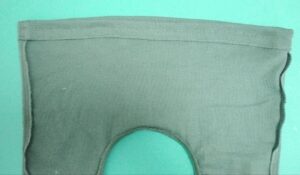 2.5cm、2.5cmで3つ折りにして縫ったら、真ん中を縫い、ゴムが2本入るようにする。