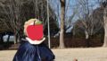 市販のジャンパースカートやワンピースだと膝で踏んでしまって動きにくそうだったので、少しだけ短めに作りました。