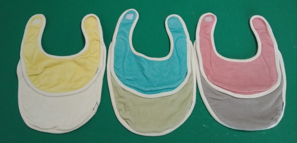 娘が生まれる前に西松屋で買っておいたスタイ。成長や洗濯で小さくなったのでリメイクしました。