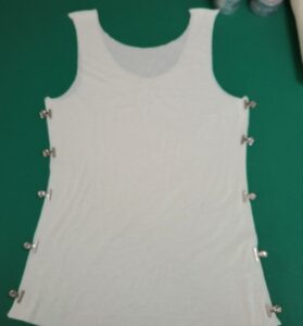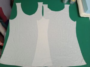 襟ぐりと袖口の開き具合、胴回りの締め付け具合、丈の長さ、全部ぴったりがなかなか見つからずイラつくこともしばしば。一度作ってみたら簡単なのにすごく快適になったのでここ数年は自分で作っています。