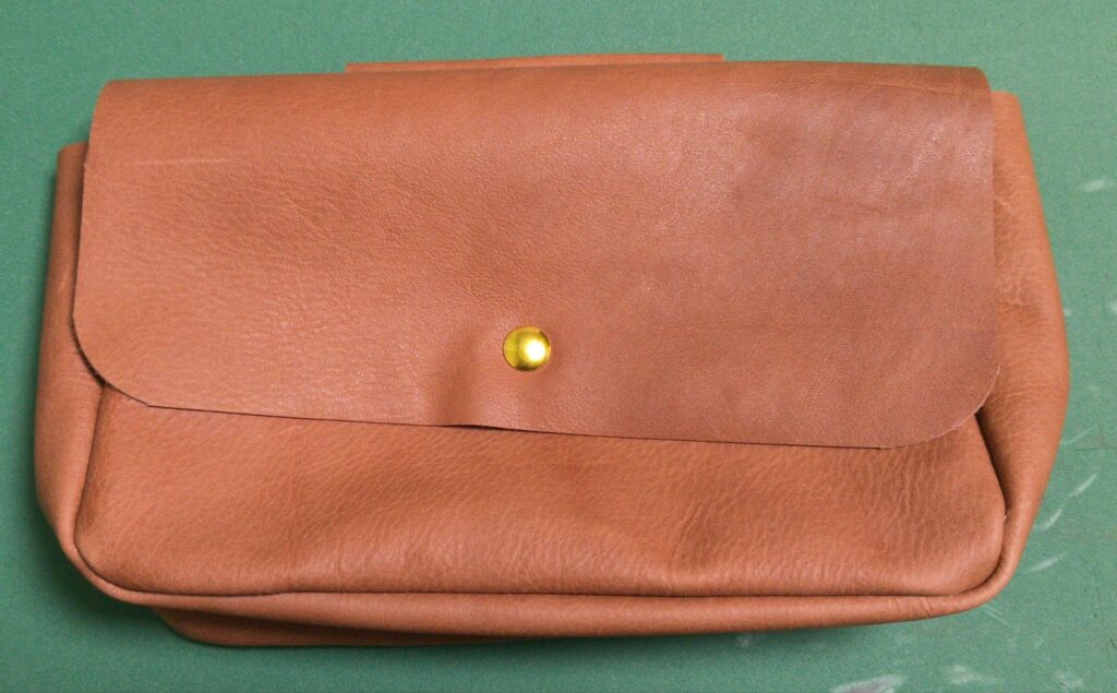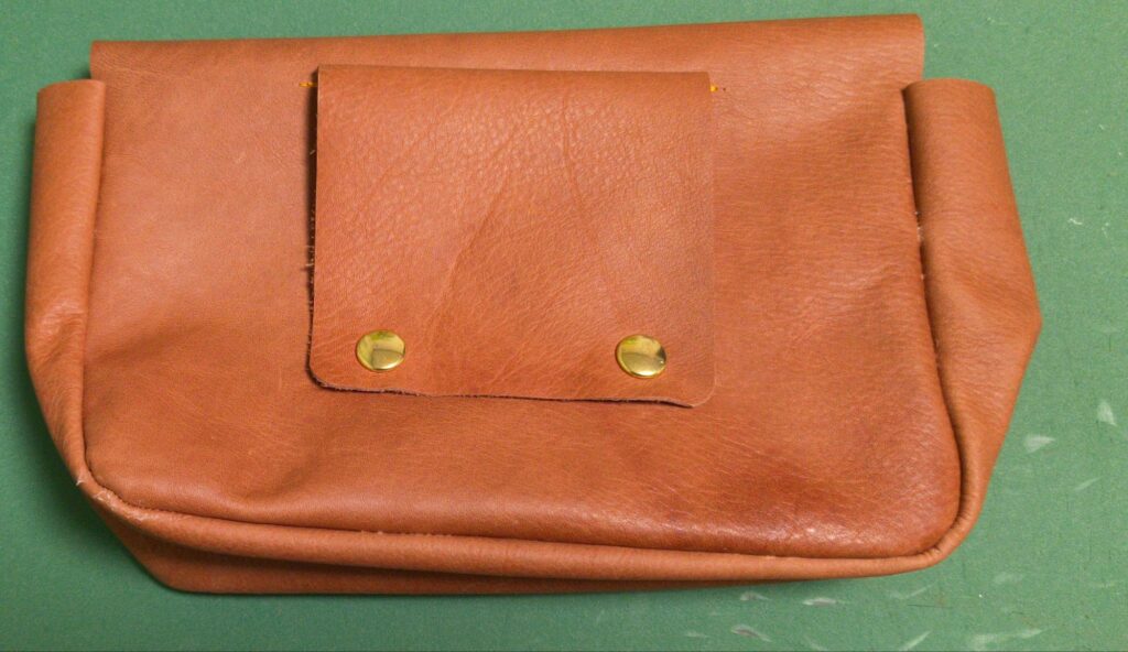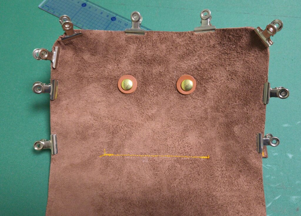 というわけで、今回は抱っこ紐用のポーチを革で作りました。