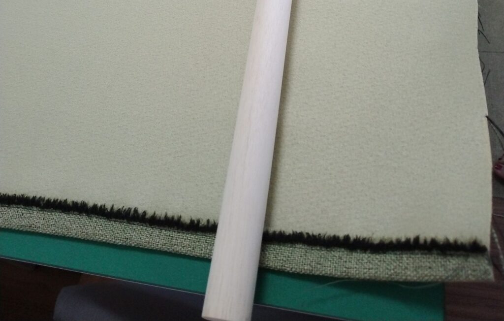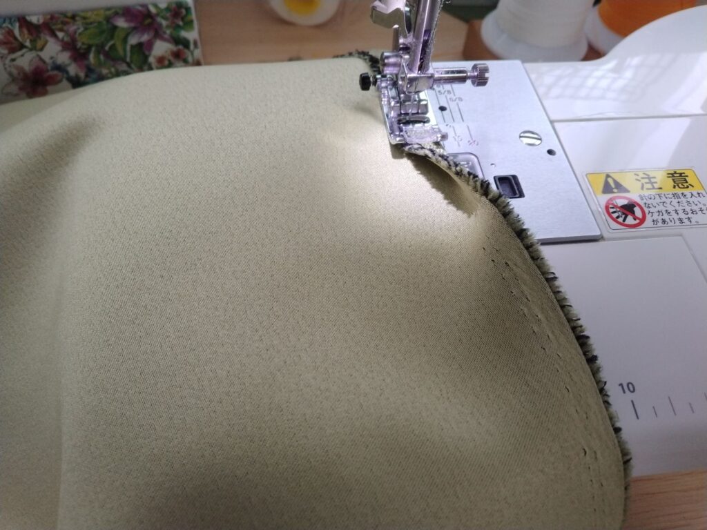 裾に木の丸棒を入れて重しにするので2cm+5cmで三つ折りに縫いました。