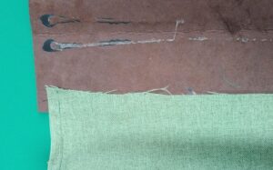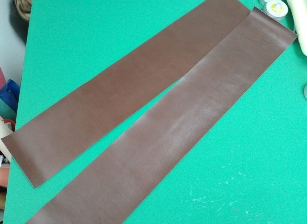 カーテンの幅が150cm程度あるので本当は牛革が良いのですが、在庫にちょうど良い厚み、色の物がなかったので今回は山羊革を使ってつなぎ合わせます。