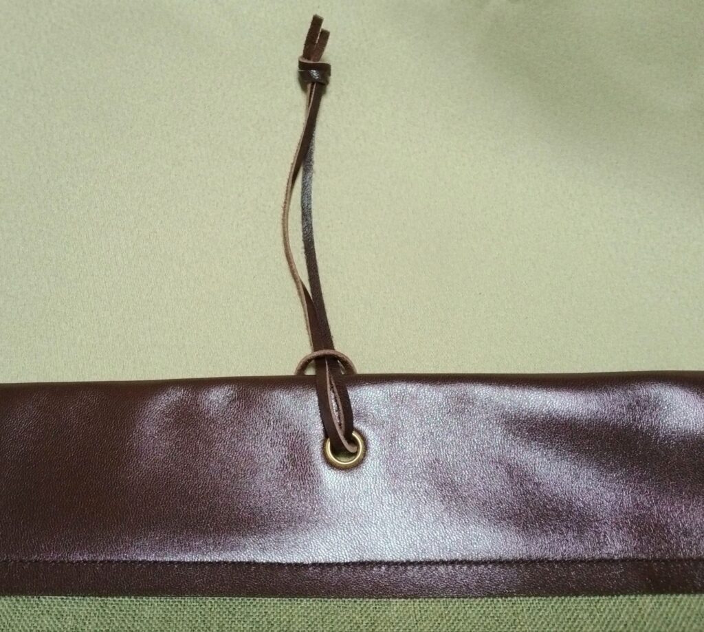 材料:布150cm(幅も150cm。余っていたカーテン用布なので150cmですが、本当は170cmくらい欲しかった。)、ヤギ革152cm×14cmとれるくらい、革ひも1m、木のΦ18mm丸棒180cm、ハトメΦ8.1 4組