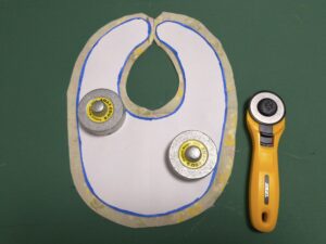 写真では縫い代1cm分足して切っていますが、少し大きすぎたので、2枚目からは型紙ぴったりにしました。