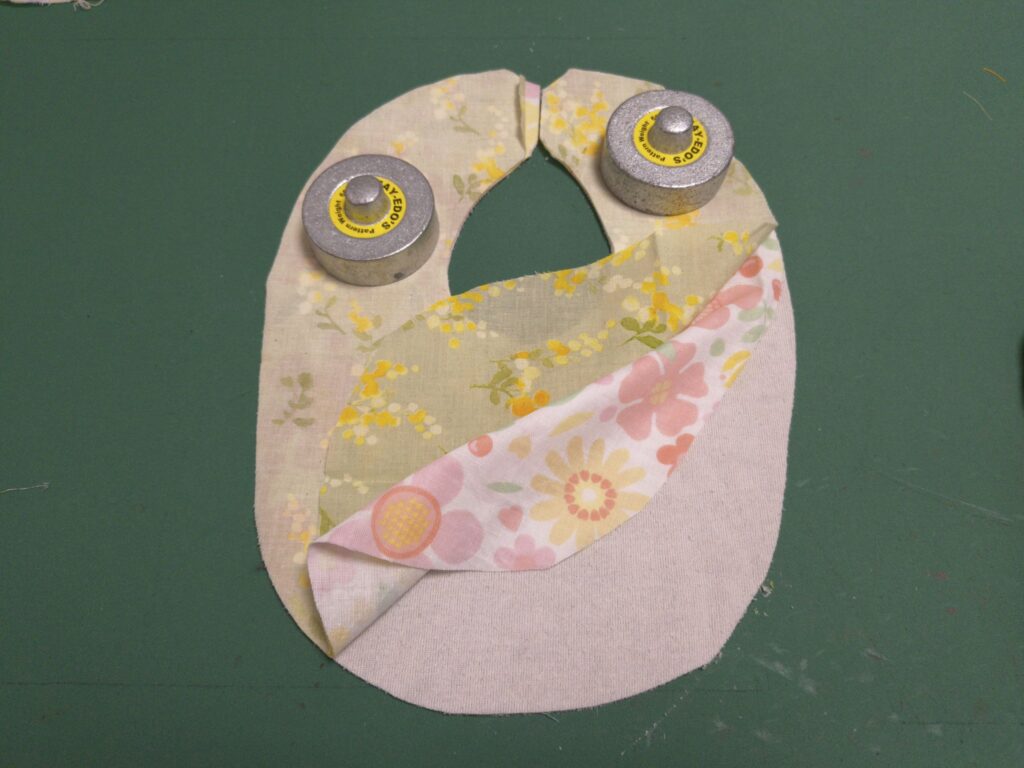 あと以前はマジックテープで止めていたのですが、娘が眠ってから外そうとして堅い方のマジックテープで首にひっかき傷を付けてしまったのでスナップボタンにしました。