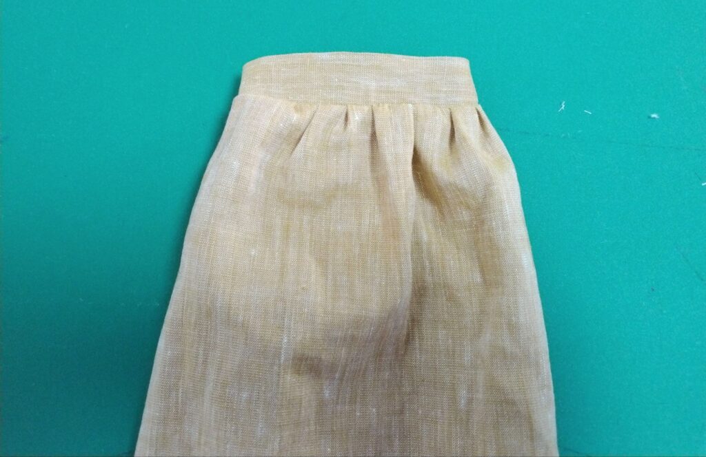 ギャザーを寄せてカフスを付けます。
