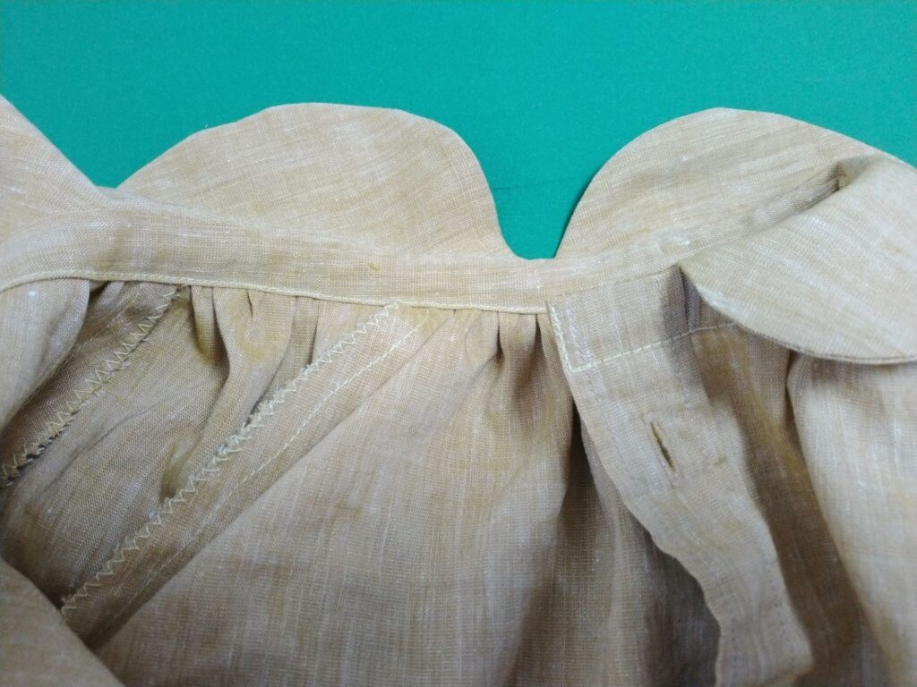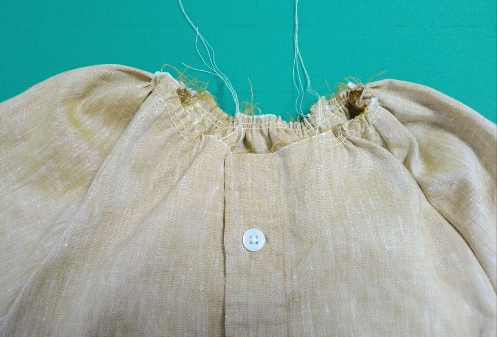 身頃と袖の首回りをぐるっと2本縫ってギャザーを寄せます。