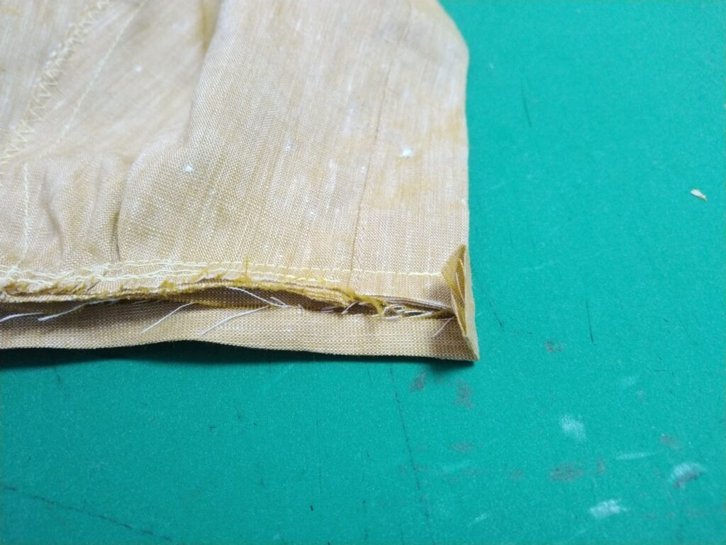 表(?)から見てもきれい。挟み込む式のバイアステープはめちゃくちゃ苦手なので極力避けてます。いずれはきれいに縫えるようになりたい。。。