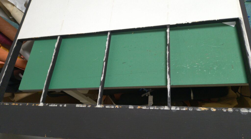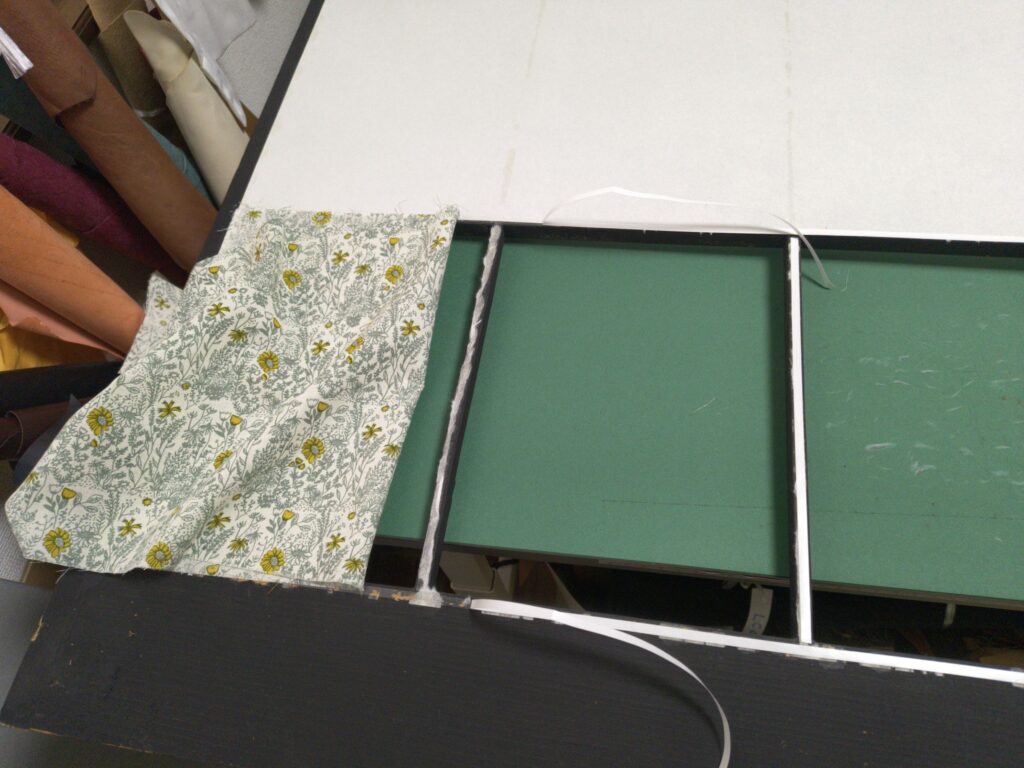 最下段1段分を張り替えるので、よさげな布を30cm×85cmにカットします。シワがあったらアイロンもかけておきます。