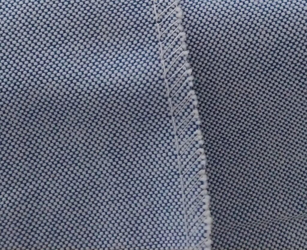 縫い線から1.5cm程度のところで切り、2枚合わせてジグザグミシンをかけます。