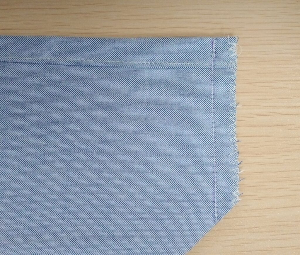 処理がされていない2辺を1cm+1cmの3つ折りにして縫います。