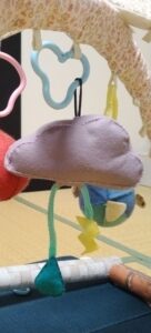 作り始めてすぐ、娘が寝返りが出来るようになってあまりメリーに興味を示さなくなってしまったので、なかなかモチベーションが維持できず放置していました。