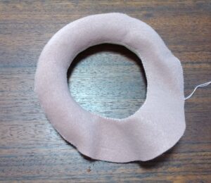 お好みの色のフェルトを外円直径11cm、内円6cm程度のドーナツ型に2枚切ります。