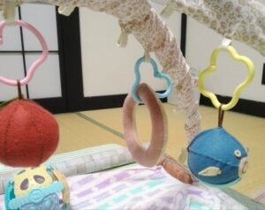 成長に合わせて吊り下げる物や場所を変えられるようにしたので、まだしばらく使えそう。