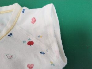 まだギリ着られるサイズですが、この調子だと次の冬にはつんつるてんどころか腕も入らなくなりそう…。というわけで新生児コンビ肌着をすぐに使える夏仕様にリメイクします。